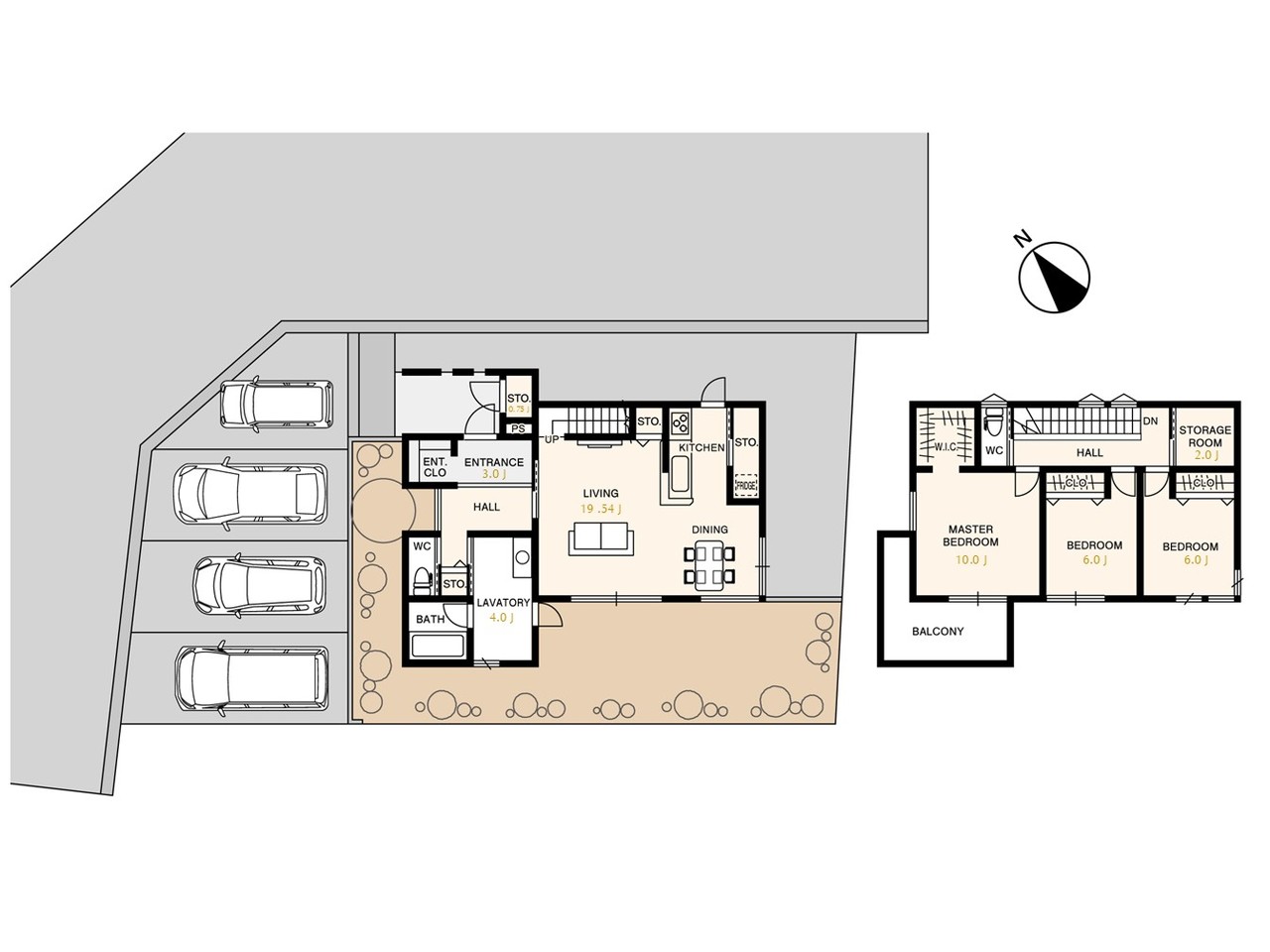 | 間取 | 3SLDK + WIC、SICあり (LDK19.54帖、S2帖、洋室10帖、洋室6帖、洋室6帖) | ||