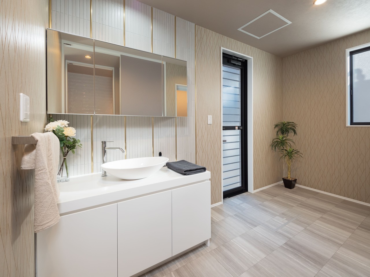 ワイドな洗面化粧台付き