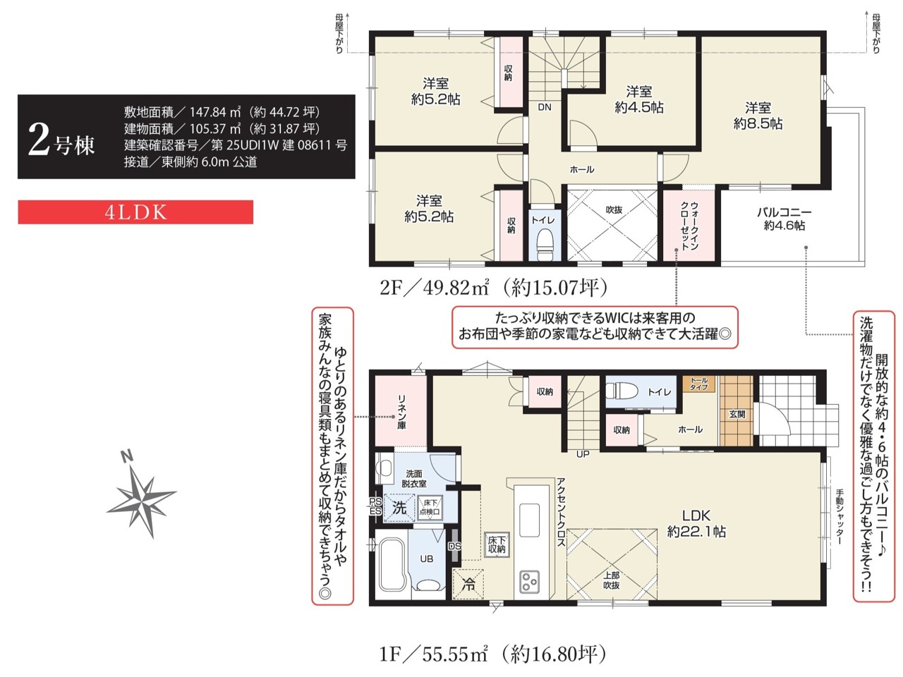 | 建築確認番号 | 第25UDI1W建08610号 | 駐車スペース | 2台(カースペース:並列) |