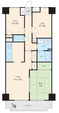 | 間取 | 3LDK (LDK12帖、洋室5.8帖、洋室5帖、和室6帖) | ||