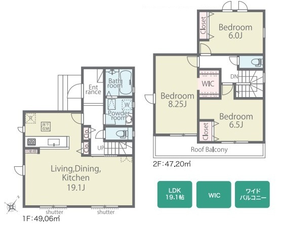 | 間取 | 3LDK (LDK19.1帖、洋室8.25帖、洋室6.5帖、洋室6帖) | ||