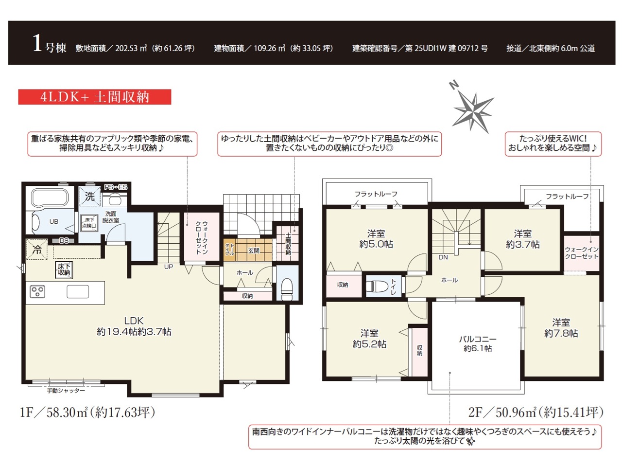 | 建築確認番号 | 第25UDI1W建09712号 | 駐車スペース | 3台(カースペース:並列) |