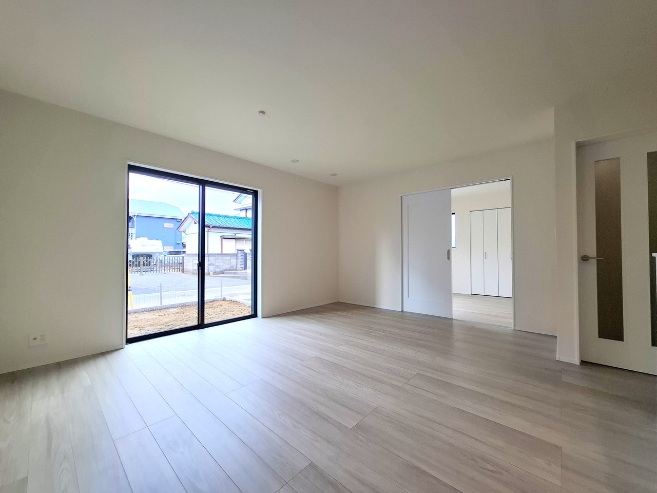 日差しがうれしいリビング、大窓からの見晴らしも良好