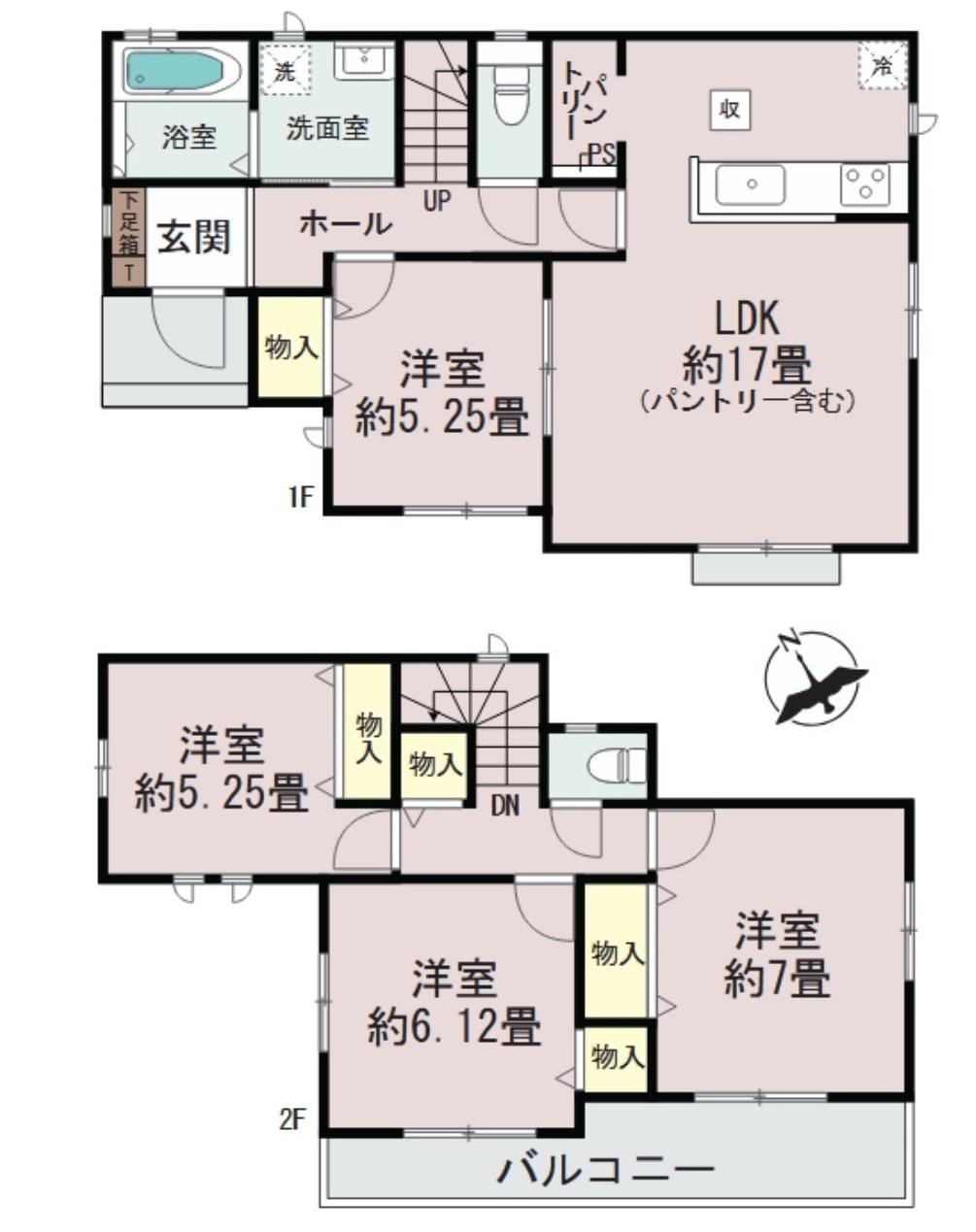 | 間取 | 4LDK (LDK17帖、洋室7帖、洋室6.12帖、洋室5.25帖、洋室5.25帖) | ||
