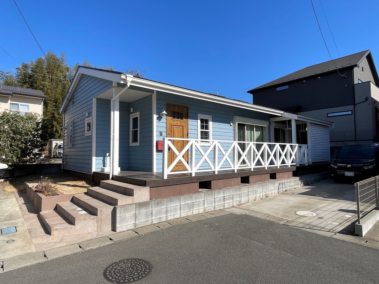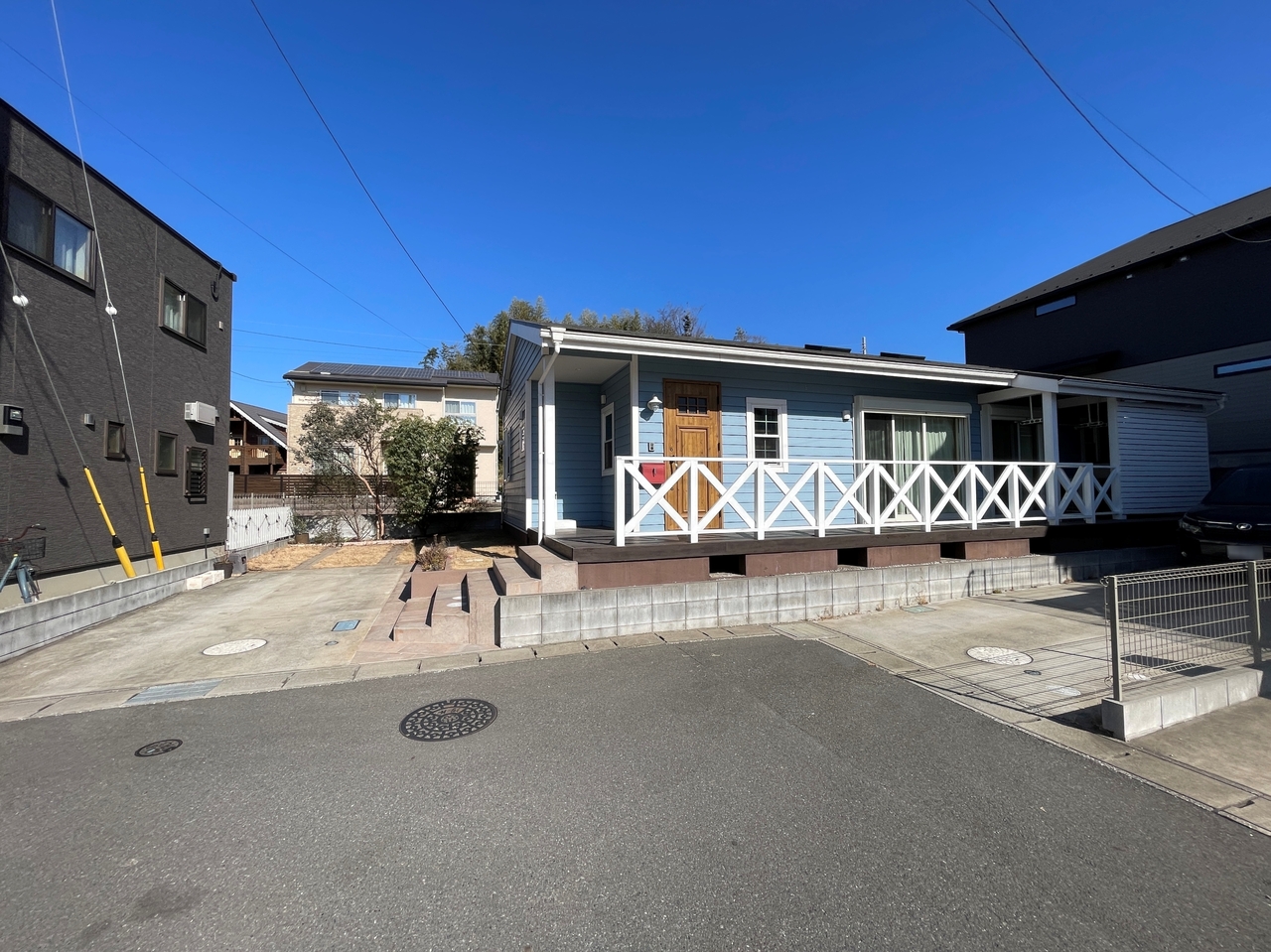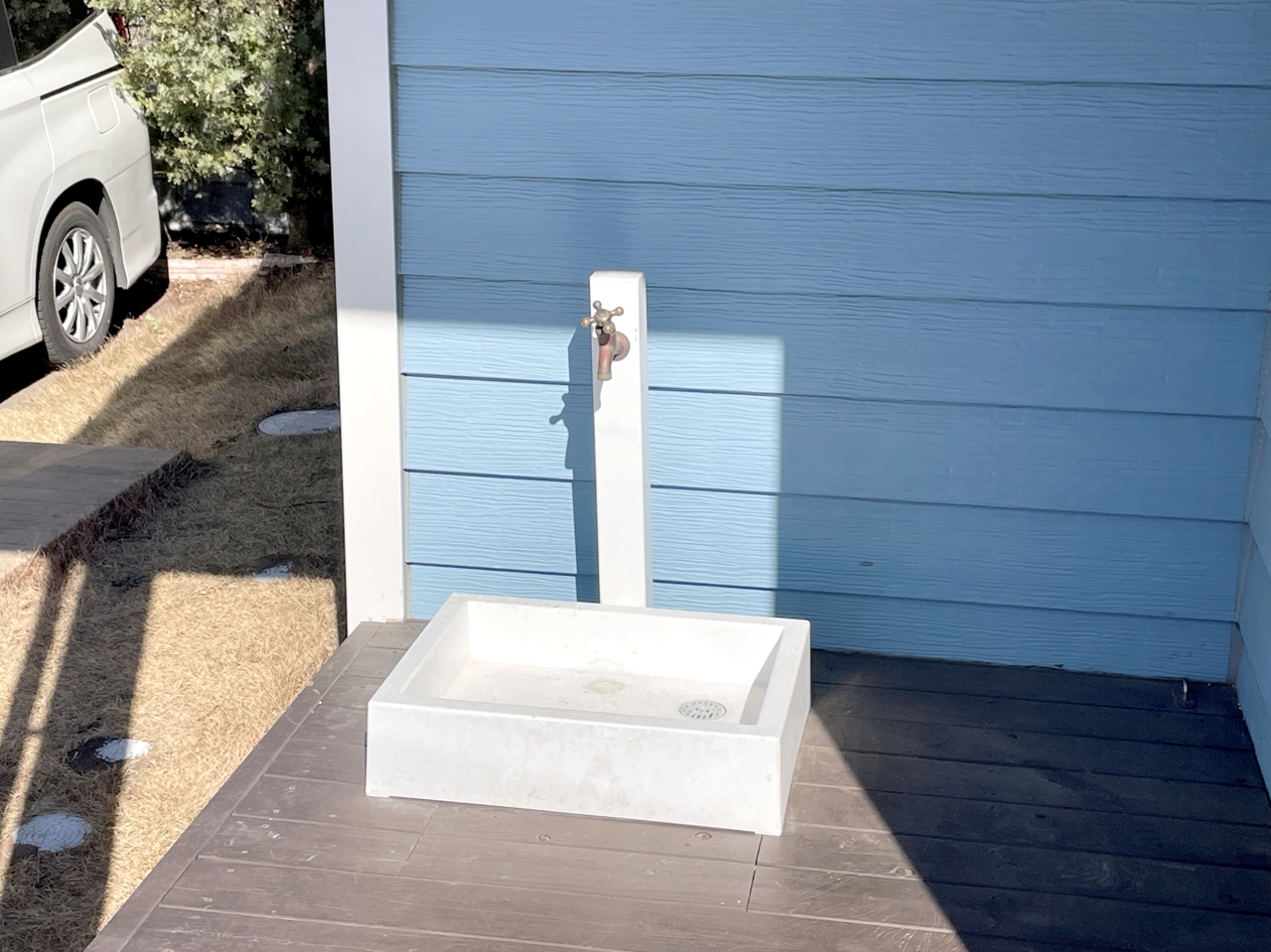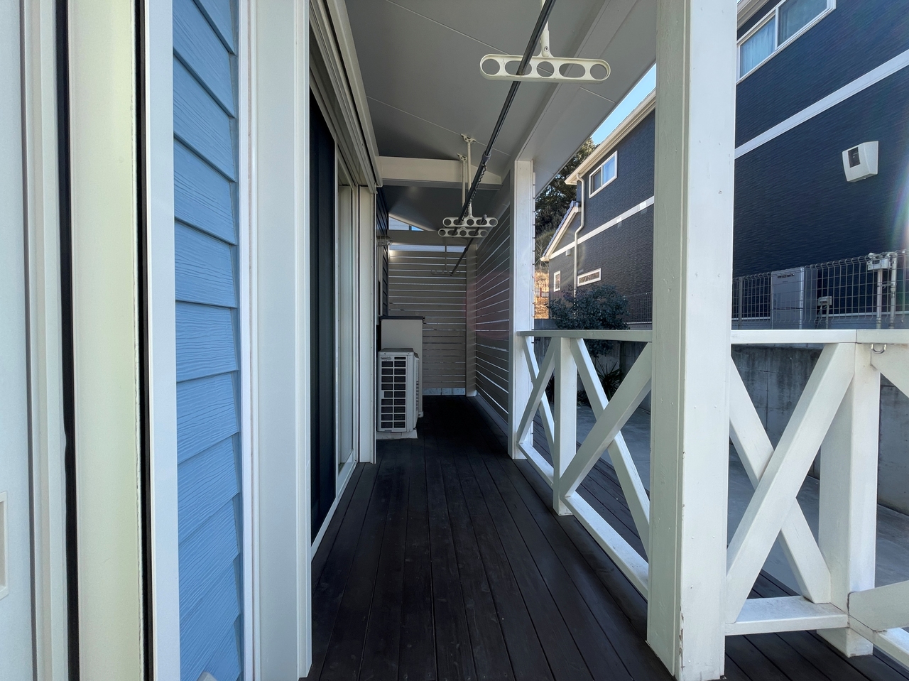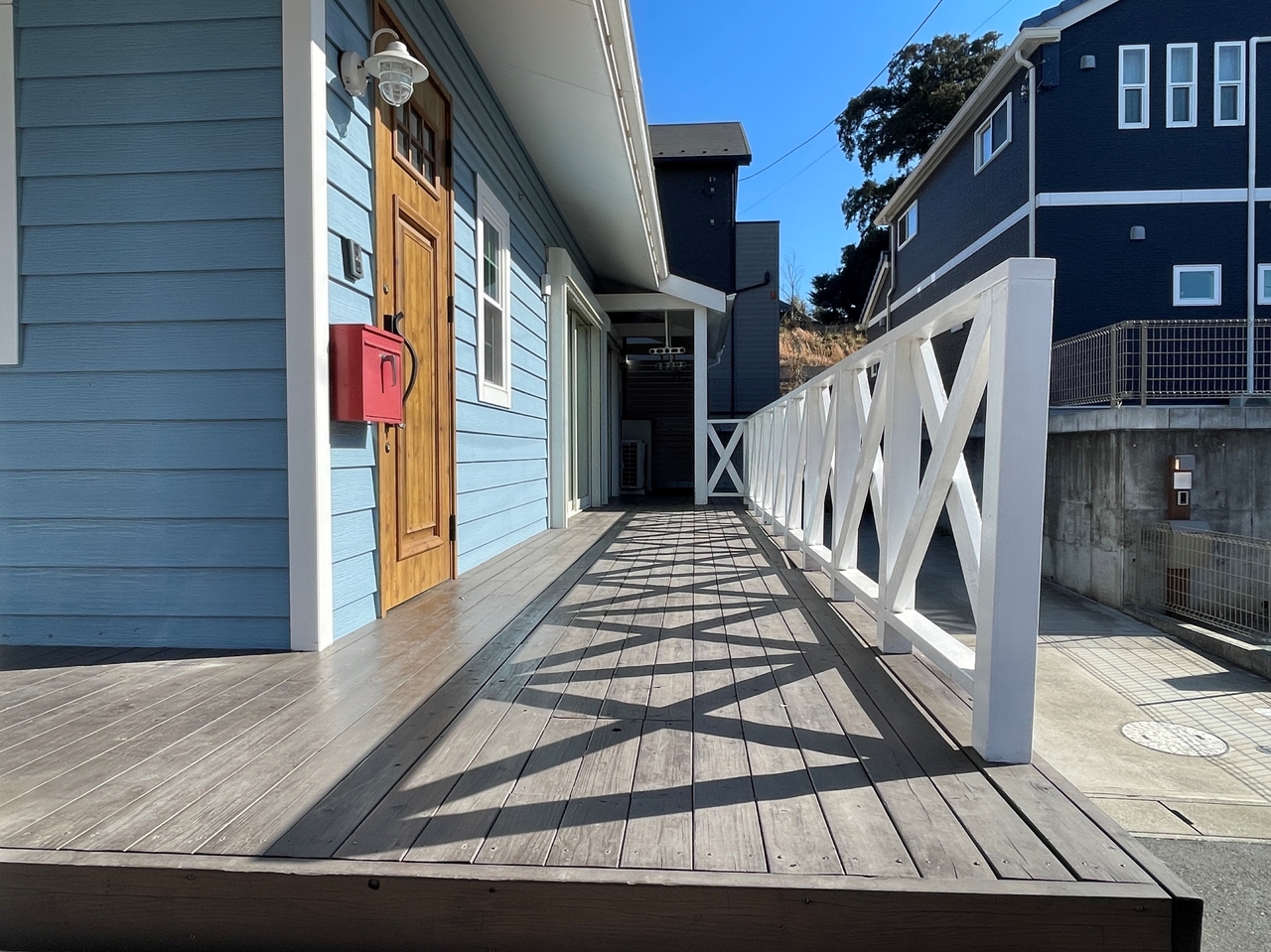 玄関前から広がる南向きのデッキテラス