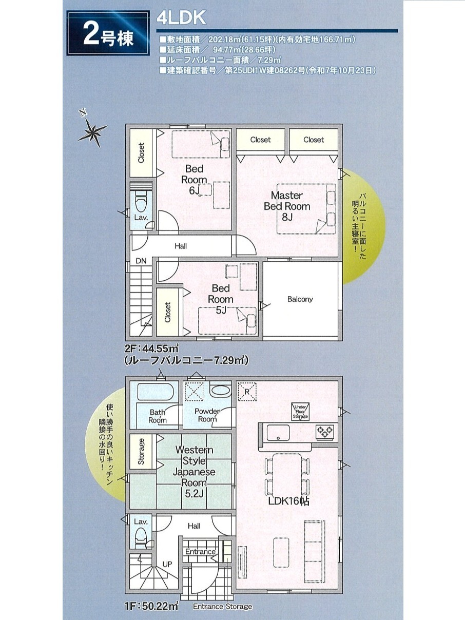 | 建築確認番号 | 第25UDI1W建08261号他 | 駐車スペース | 2台可(カースペース) |