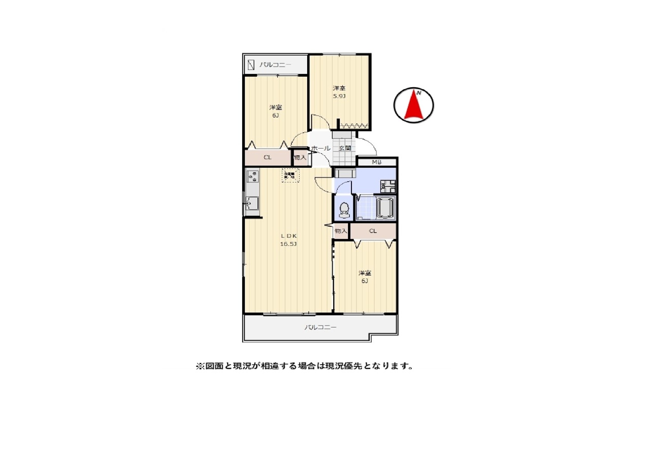 | 間取 | 3LDK (LDK16.5帖、洋室6帖、洋室6帖、洋室5.9帖) | ||