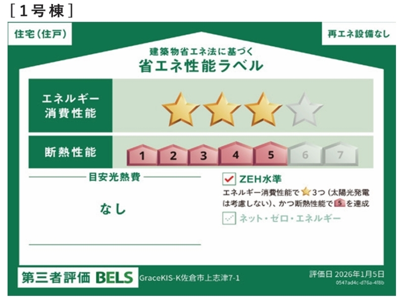 | 省エネ性能表示 | エネルギー消費性能:★★★ 断熱性能:5段階 |