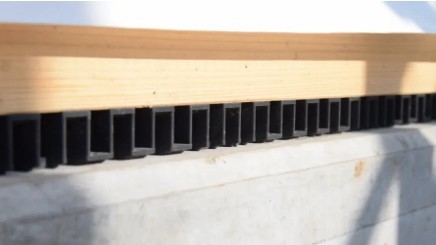 基礎パッキンを使用することで基礎の全周が換気口に早変わり。コーナー部分もしっかり換気ができ床下をカラリと保つことがきます。基礎と土台間に敷きこむことで、土台と基礎が直接触れるのを防ぎ、コンクリートから木部への水分移動もシャットアウトする効果があります。
