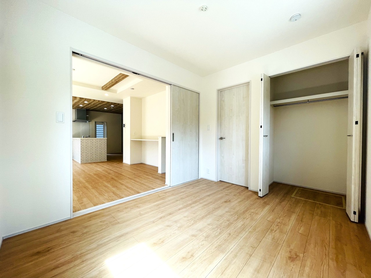 隣接する居室引戸を開放すればリビングと一体感のある広い空間としても使用できます♪(2・3号棟)