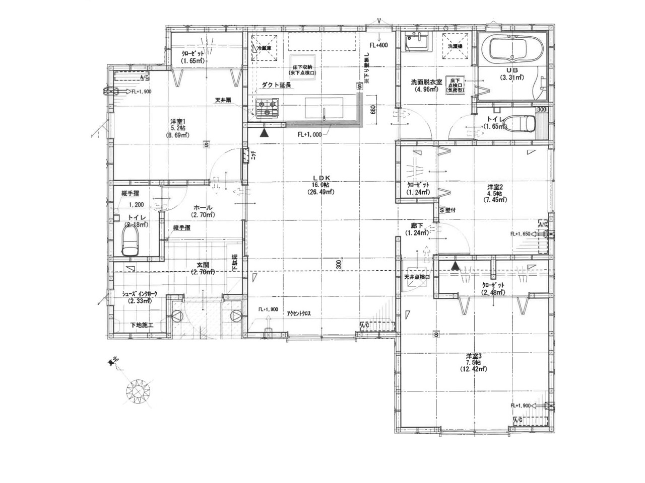 | 間取 | 3LDK (LDK16帖、洋室7.5帖、洋室5.2帖、洋室4.5帖) | ||