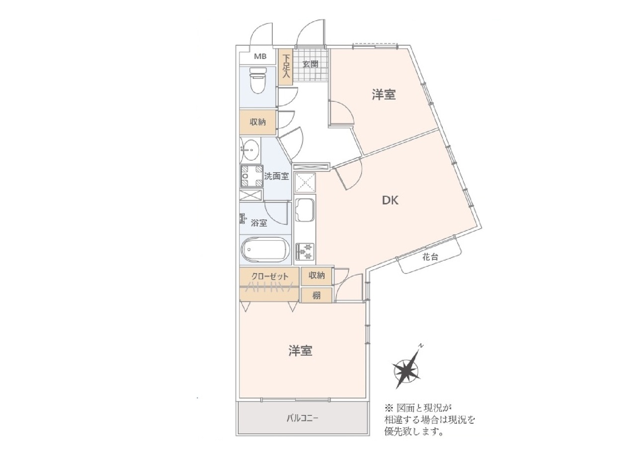 | 間取 | 2DK (DK、洋室、洋室) | ||