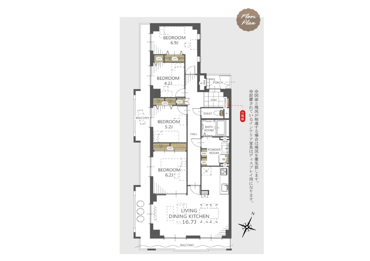 | 間取 | 4LDK (LDK16.7帖、洋室6.9帖、洋室6.2帖、洋室5.2帖、洋室4.2帖) | ||