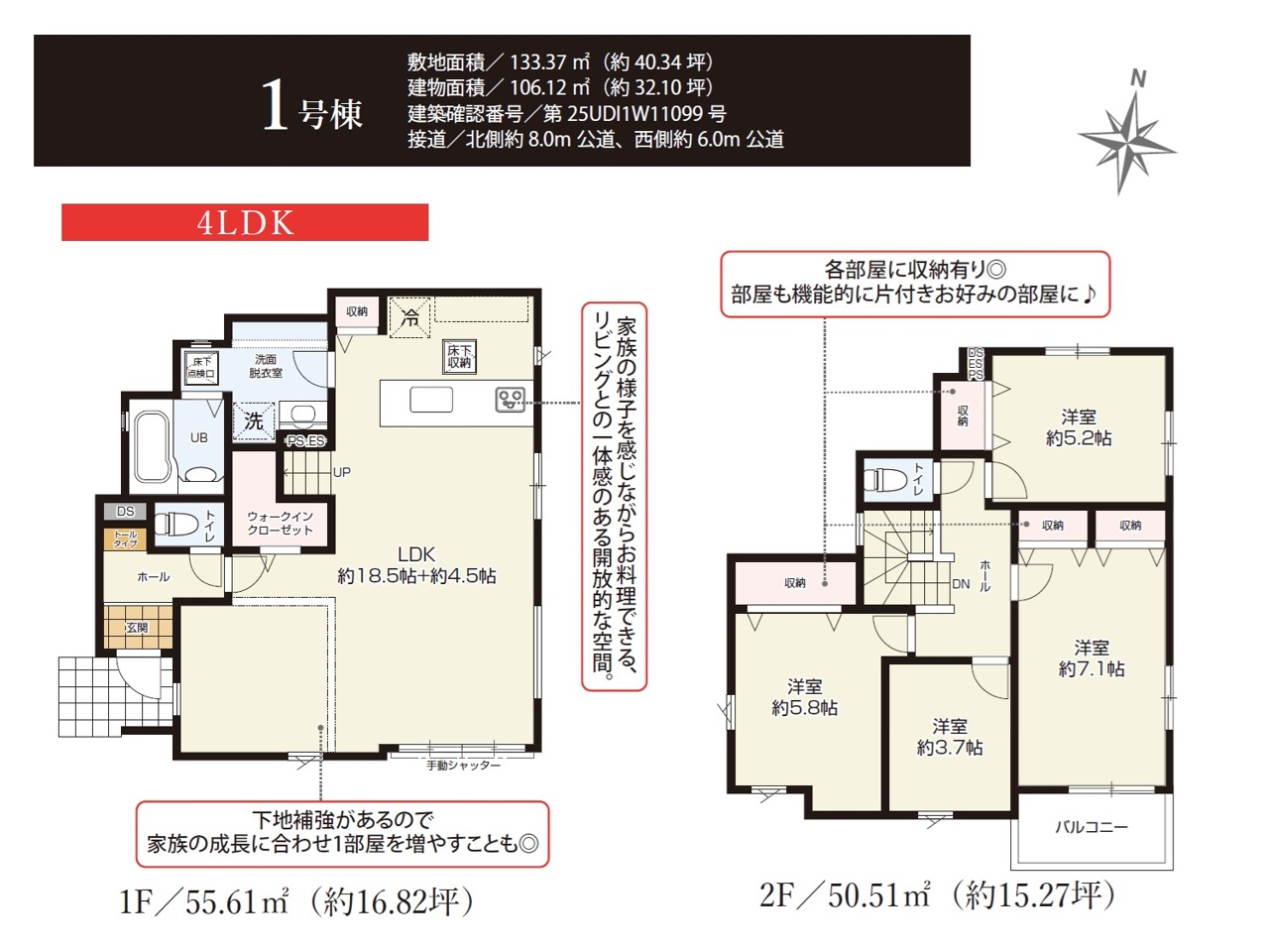 | 建物面積 | 106.12m² ~ 108.38m² | ||