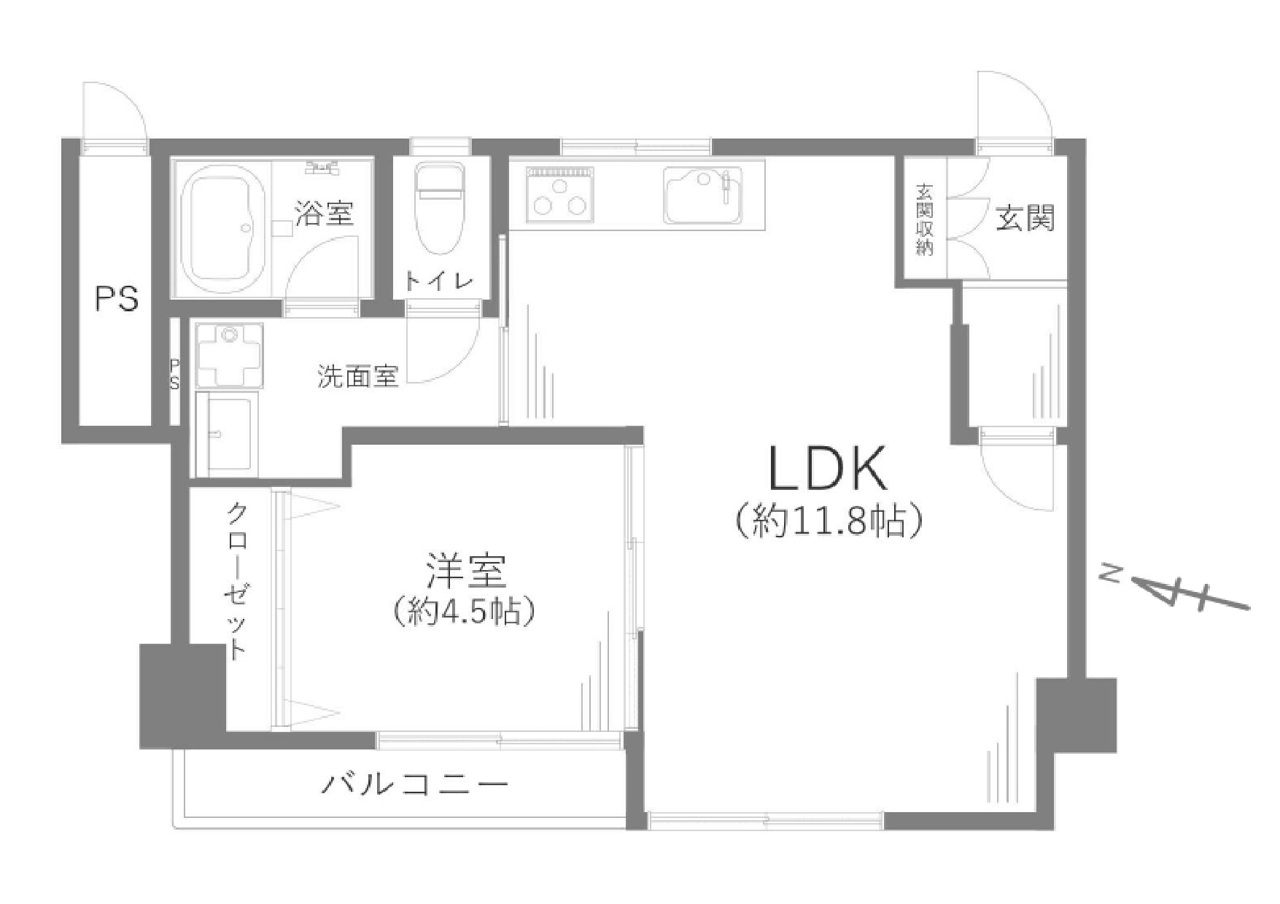 | 間取 | 1LDK (LDK11.8帖、洋室4.5帖) | ||