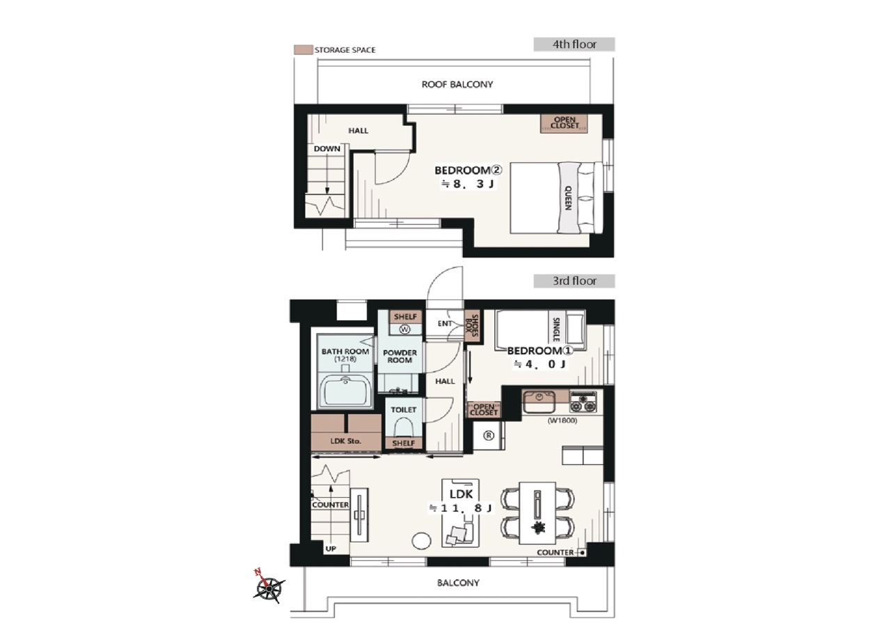 | 間取 | 2LDK (LDK11.8帖、洋室4帖、洋室8.3帖) | ||