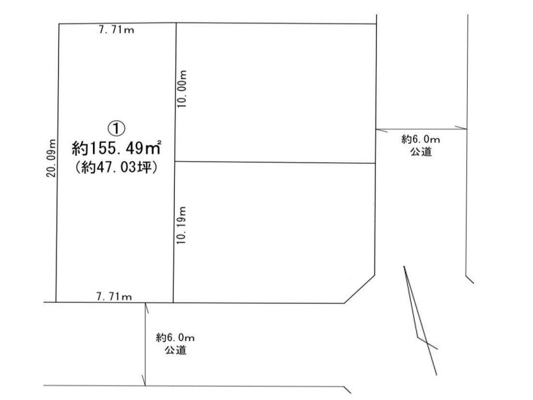 | 権利種類 | 所有権 | 接道 | 南側6M公道に18.95M接道 東側6M公道に18.12M接道 |