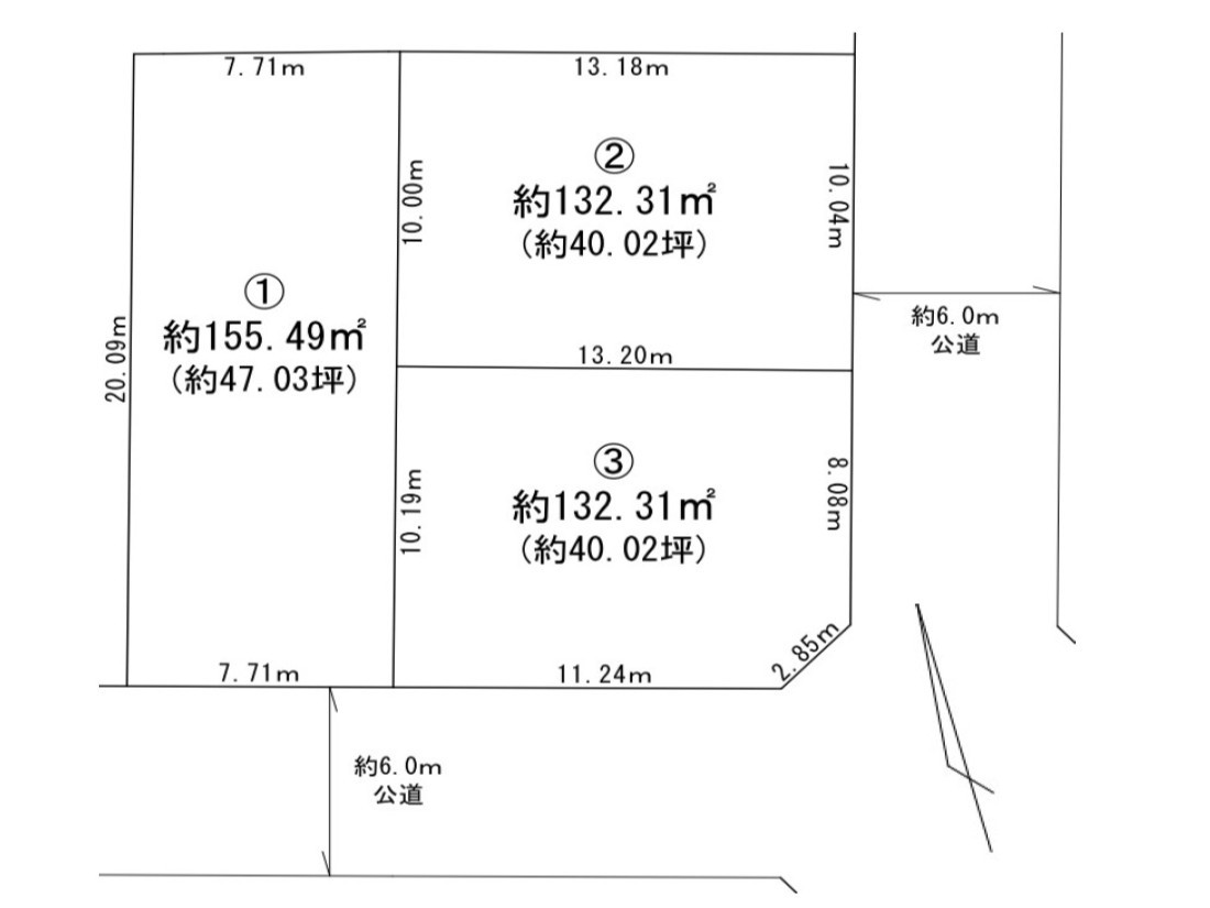 | 備考・制限等 | ※3号地角地緩和有 ※契約制限あり。木造で地階を有しない階数が3階建以下の住宅建築計画または更地利用の方へ向けた土地販売です。 ※確定測量後、面積が増減する場合がございます。 ※図面と現況が相違する場合は現況を優先します。 |