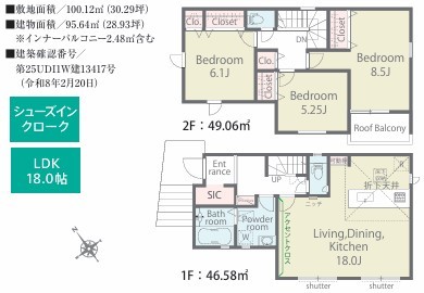 | 間取 | 3LDK (LDK18帖、洋室8.5帖、洋室6.1帖、洋室5.25帖) | ||