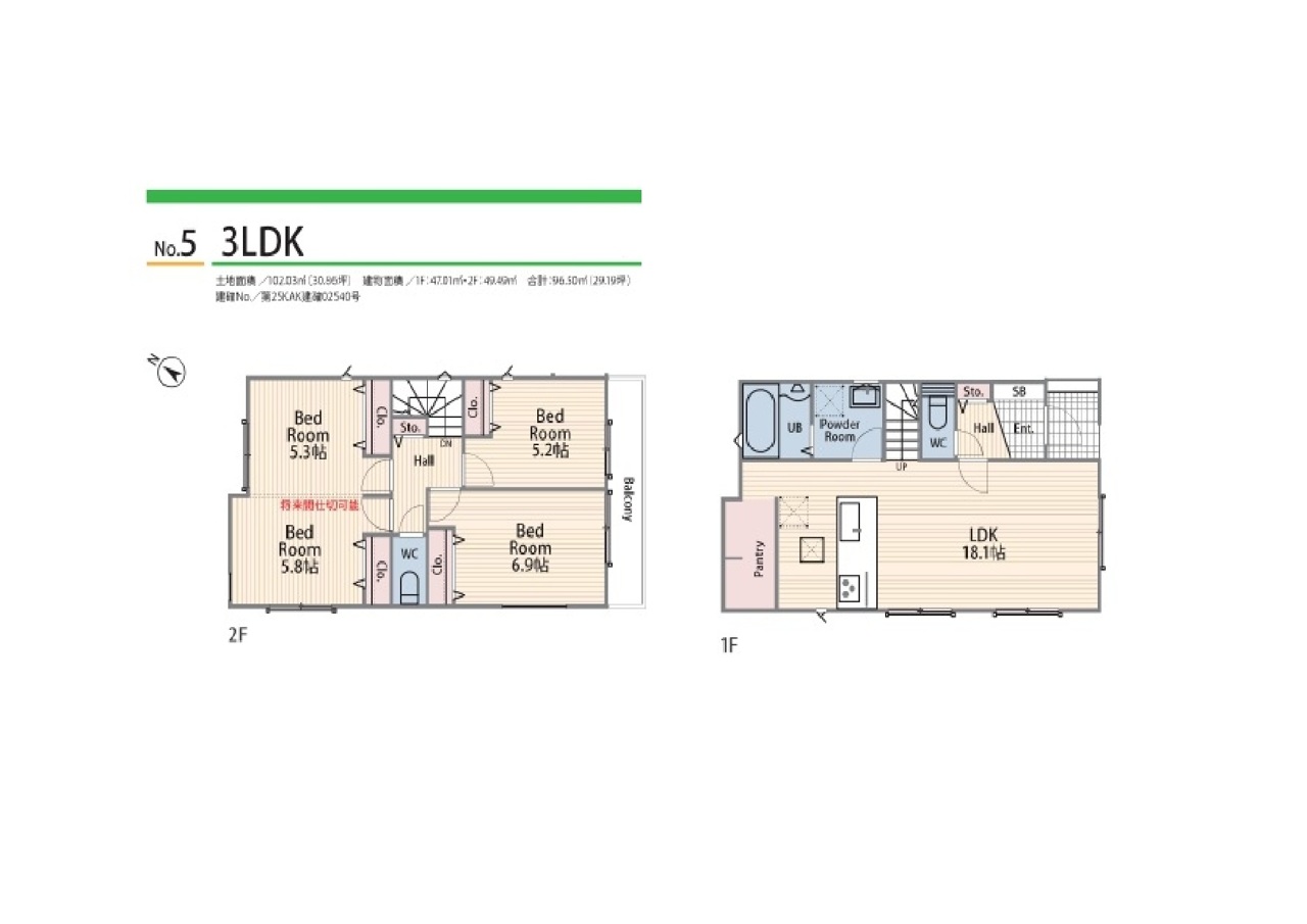 | 建物面積 | 96.5m² ~ 98.95m² 公簿 | ||