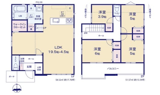 | 間取 | 4LDK + 間仕切り対応可能 (LDK24帖、洋室6帖、洋室5帖、洋室5帖、洋室3.9帖) | ||
