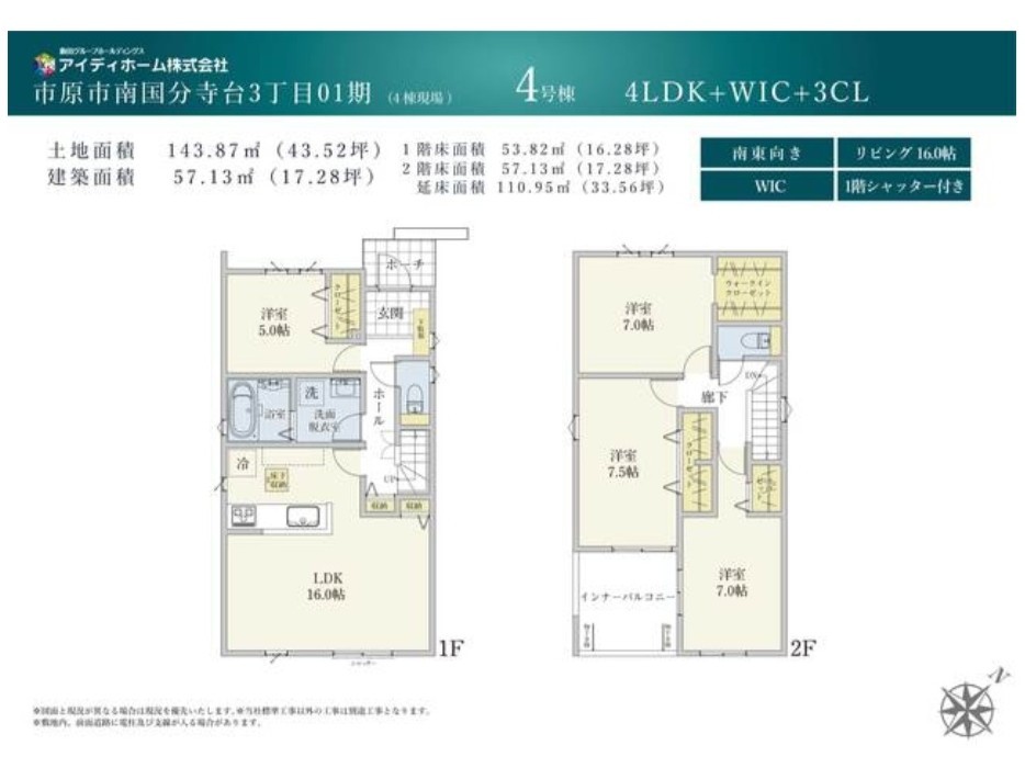 - 新築分譲 市原市南国分寺台3丁目01期 全4棟