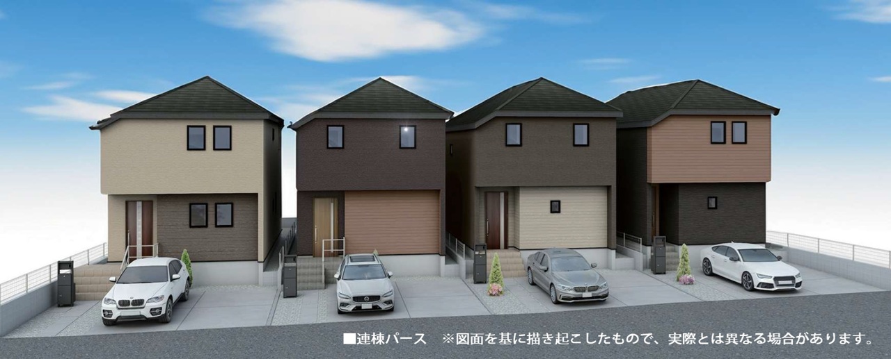 - ※完成予想図はいずれも外構、植栽、外観等実際のものとは多少異なることがあります。