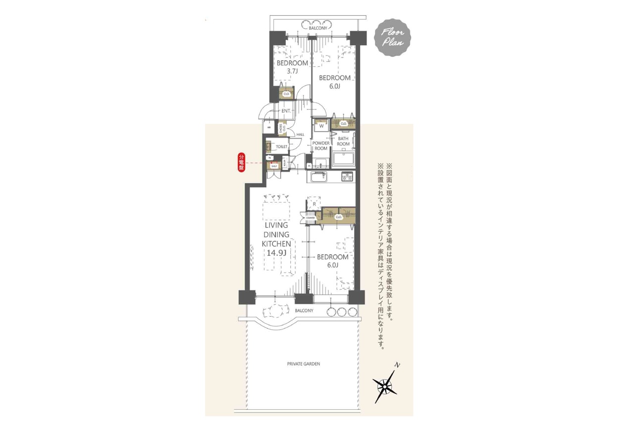 | 間取 | 3LDK (LDK14.9帖、洋室6帖、洋室6帖、洋室3.7帖) | ||