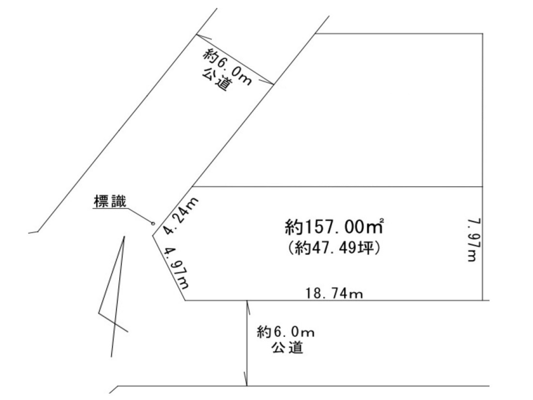 | 接道 | 北西側6M公道に17.48M接道 南側6M公道に18.74M接道 |