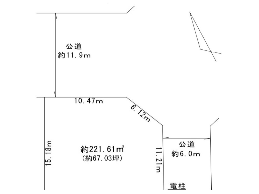 | 接道 | 北東側11.9M公道に10.47M接道 南東側6M公道に11.21M接道 |