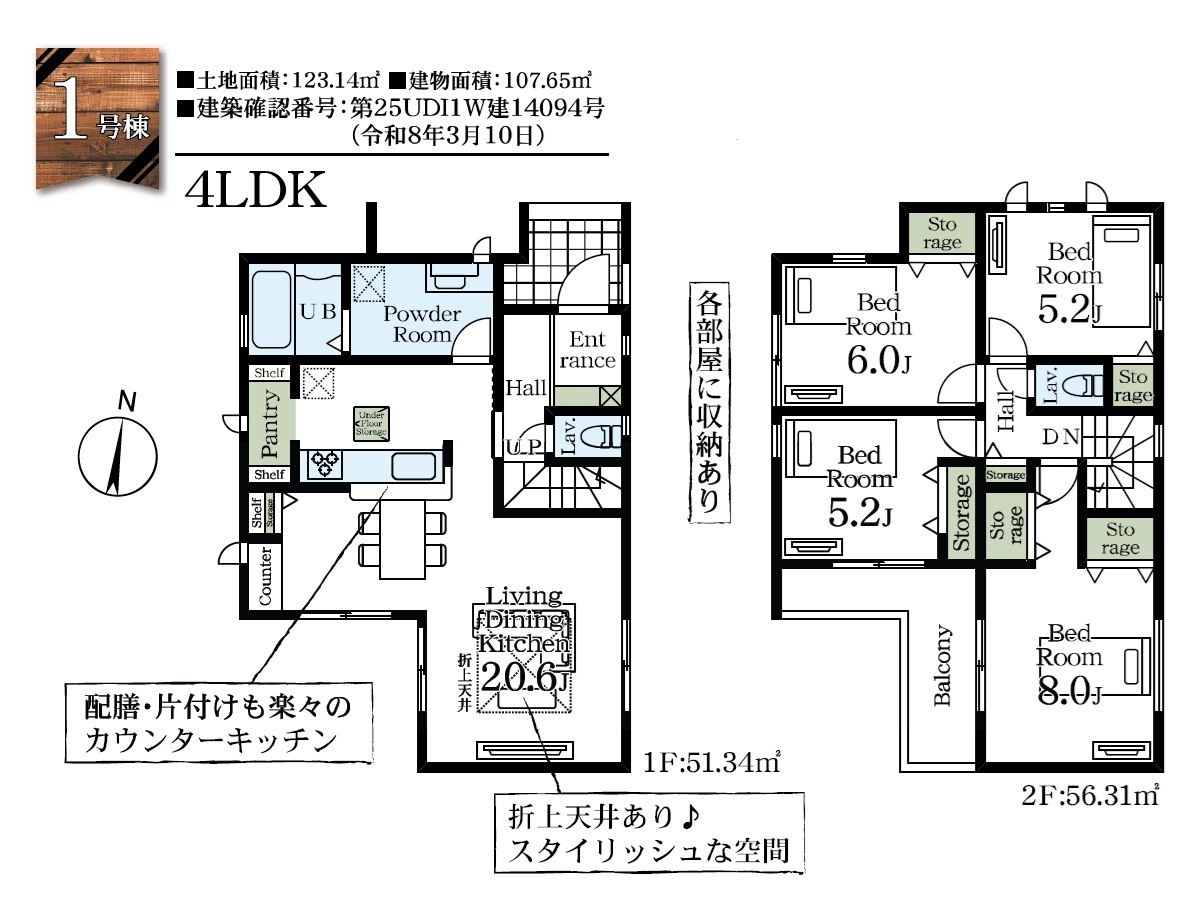 | 建物面積 | 106.82m² ~ 107.65m² | ||