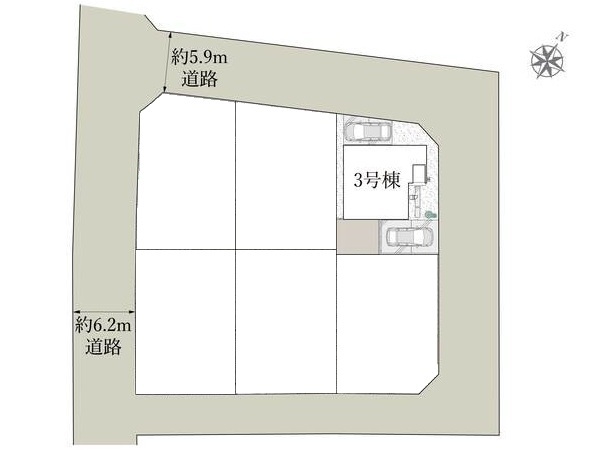 3号地側より 北側 約5.98m 市道 東側 約5.98m 市道