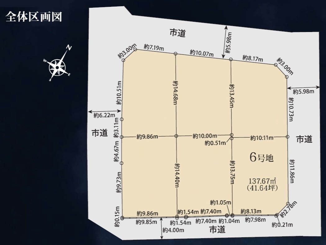 6号地側より 東側 約5.98m 市道 南側 約4.0m 市道