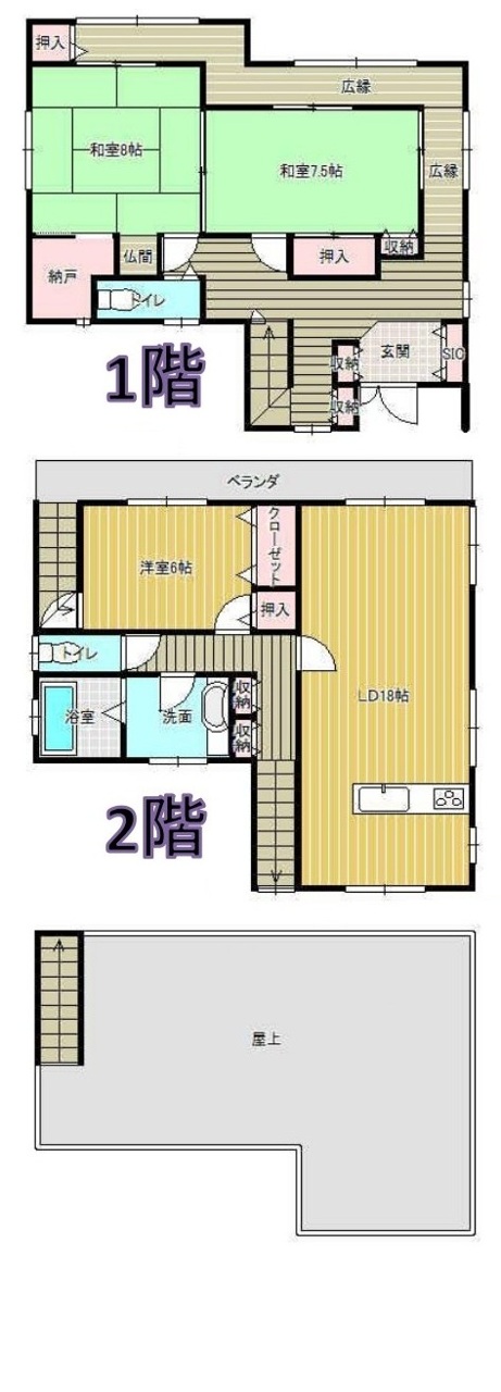 | 間取 | 3LDK (LDK18帖、和室8帖、和室7.5帖、洋室6帖) | ||