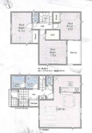 | 間取 | 3LDK (LDK19帖、洋室7.75帖、洋室6.75帖、洋室6.5帖) | ||