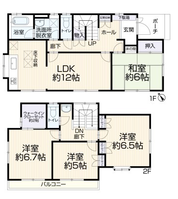 | 間取 | 4LDK (LDK12帖、洋室6.7帖、洋室6.5帖、洋室5帖、和室6帖) | ||
