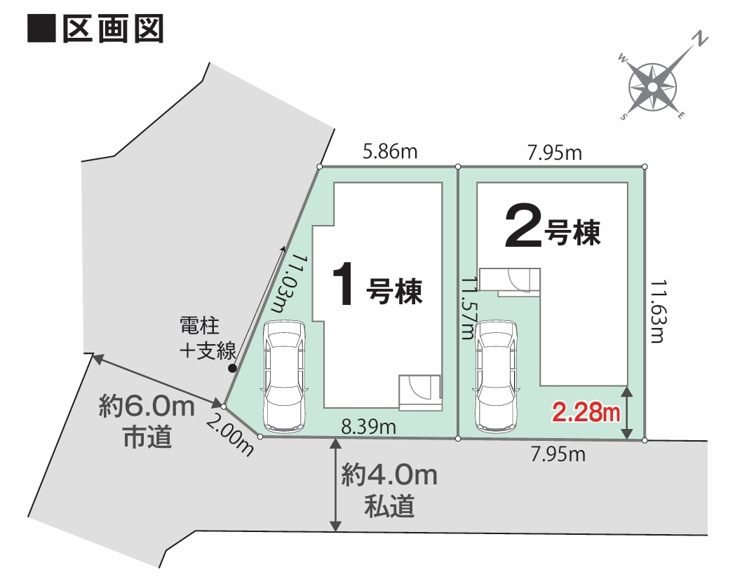 | 接道 | 南東側4M私道に接道 南西側6M公道に接道 |
