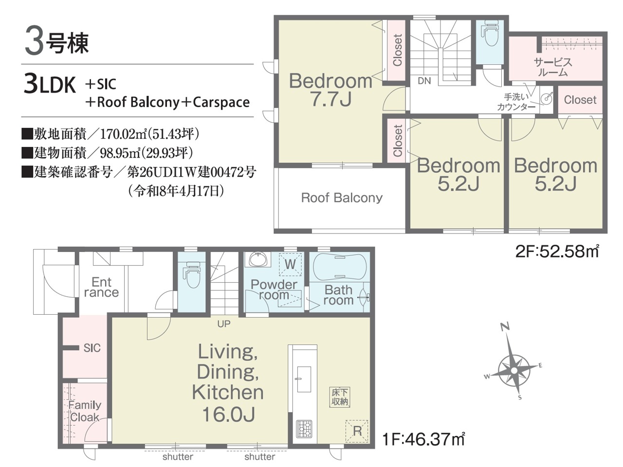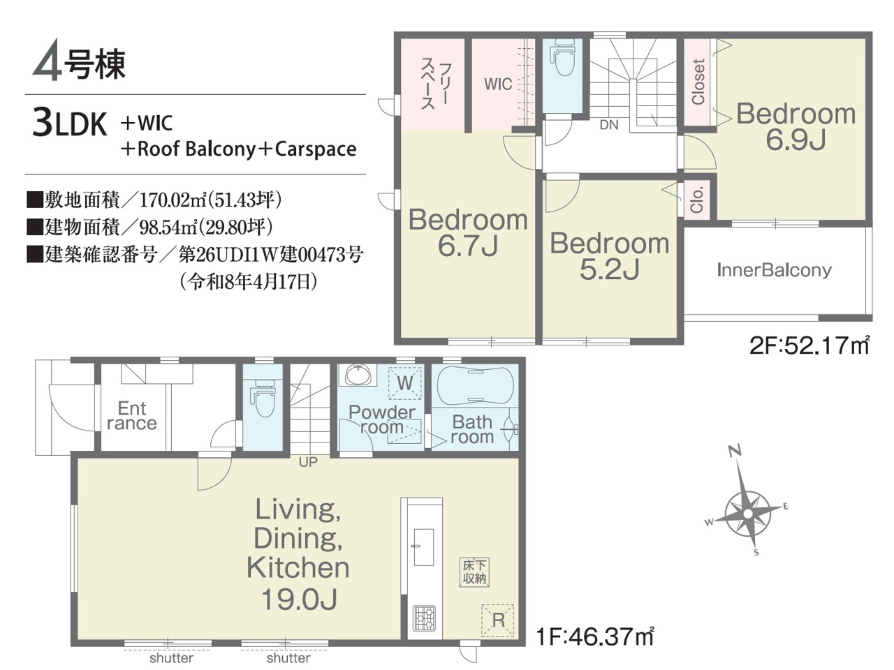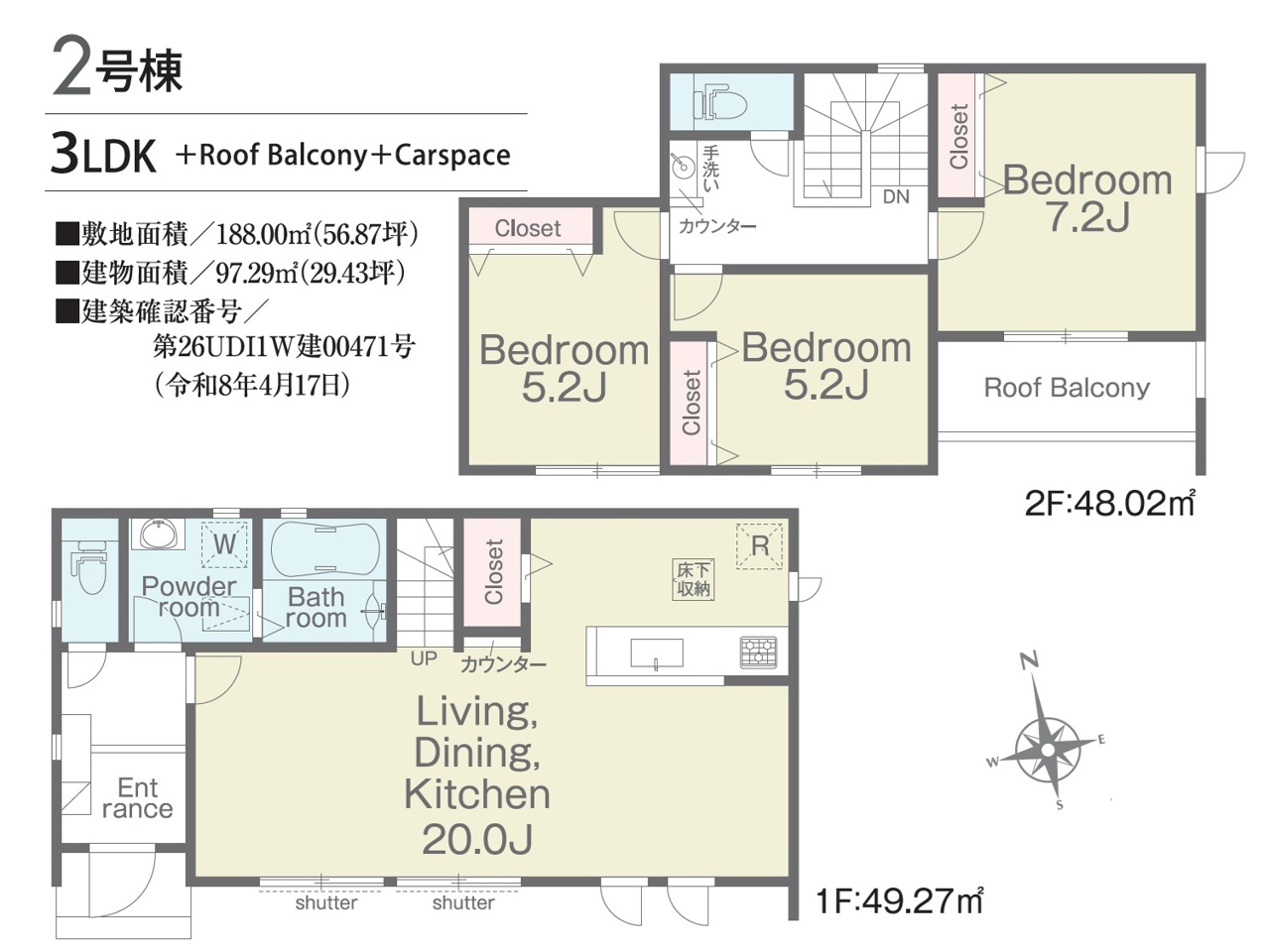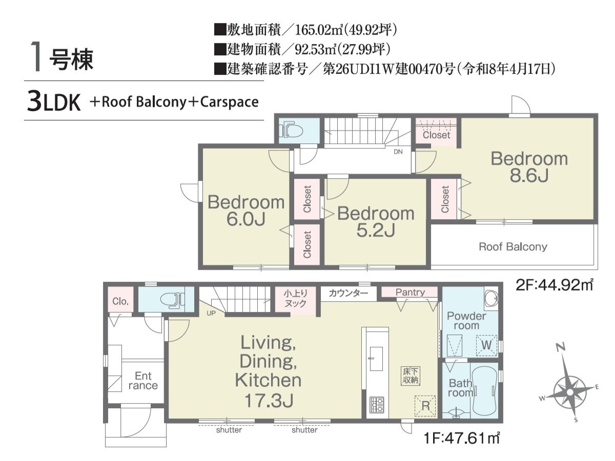 | 建築確認番号 | 第26UDI1W建00470号、他 | 駐車スペース | 2台(カースペース) |