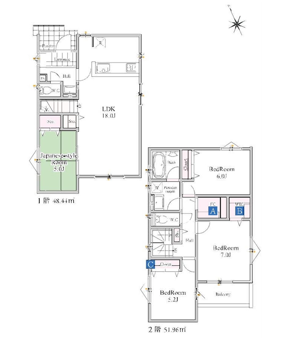 | 間取 | 4LDK (LDK18帖、和室5帖、洋室7帖、洋室6帖、洋室5.2帖) | ||