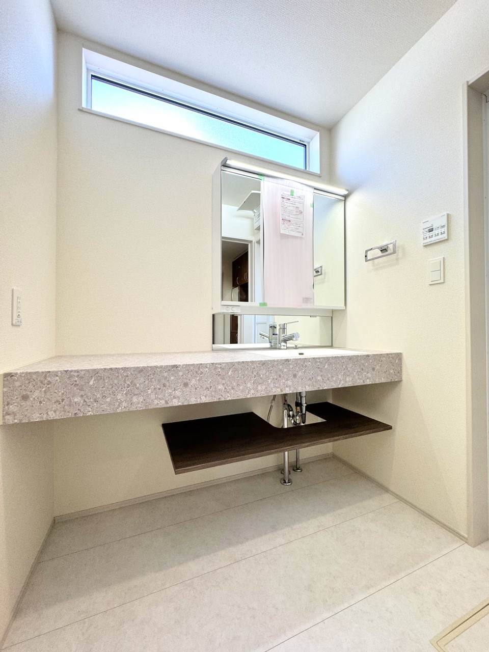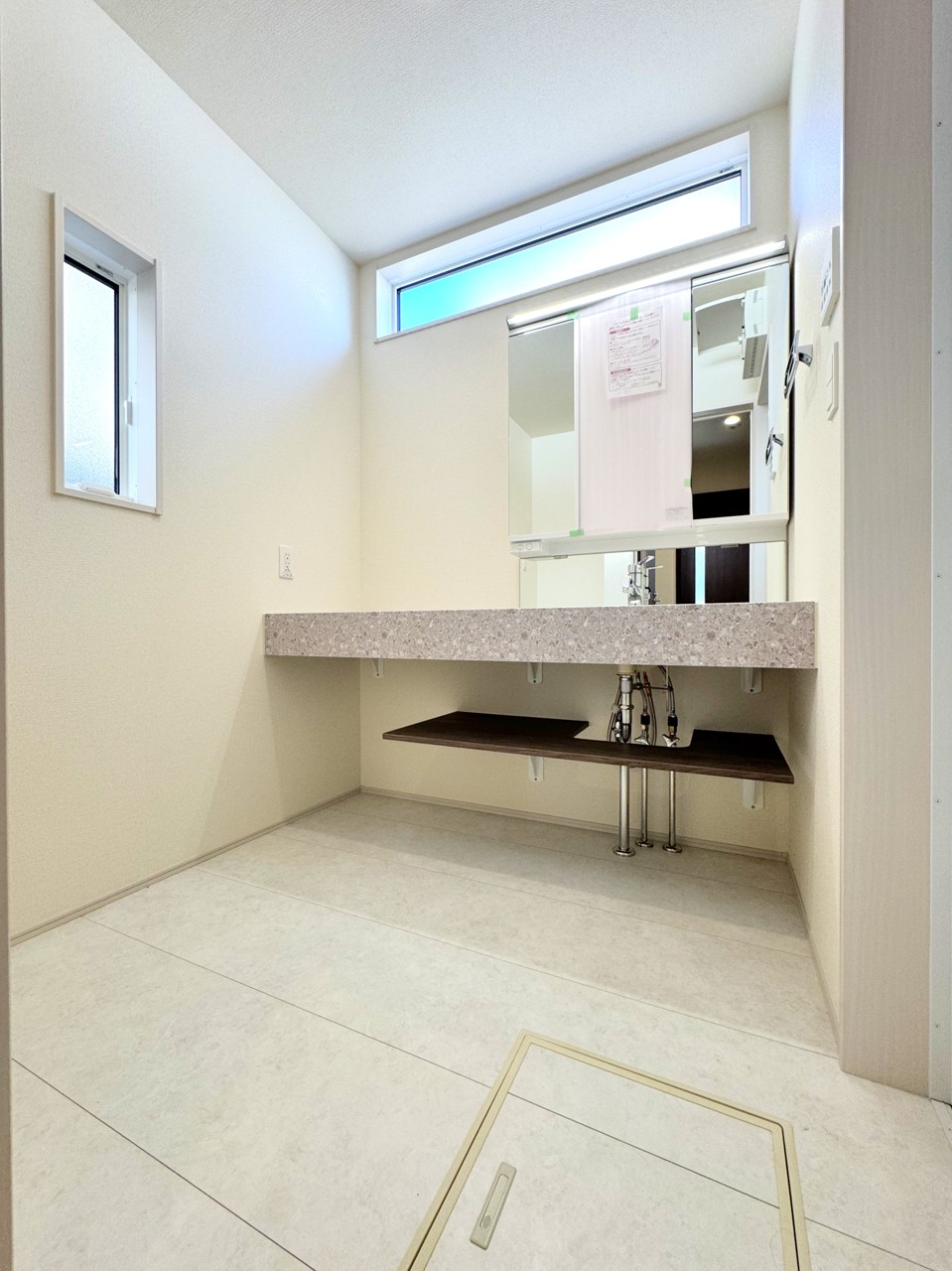 トップボード広めの洗面台で二人同時の身支度もスムーズ♪