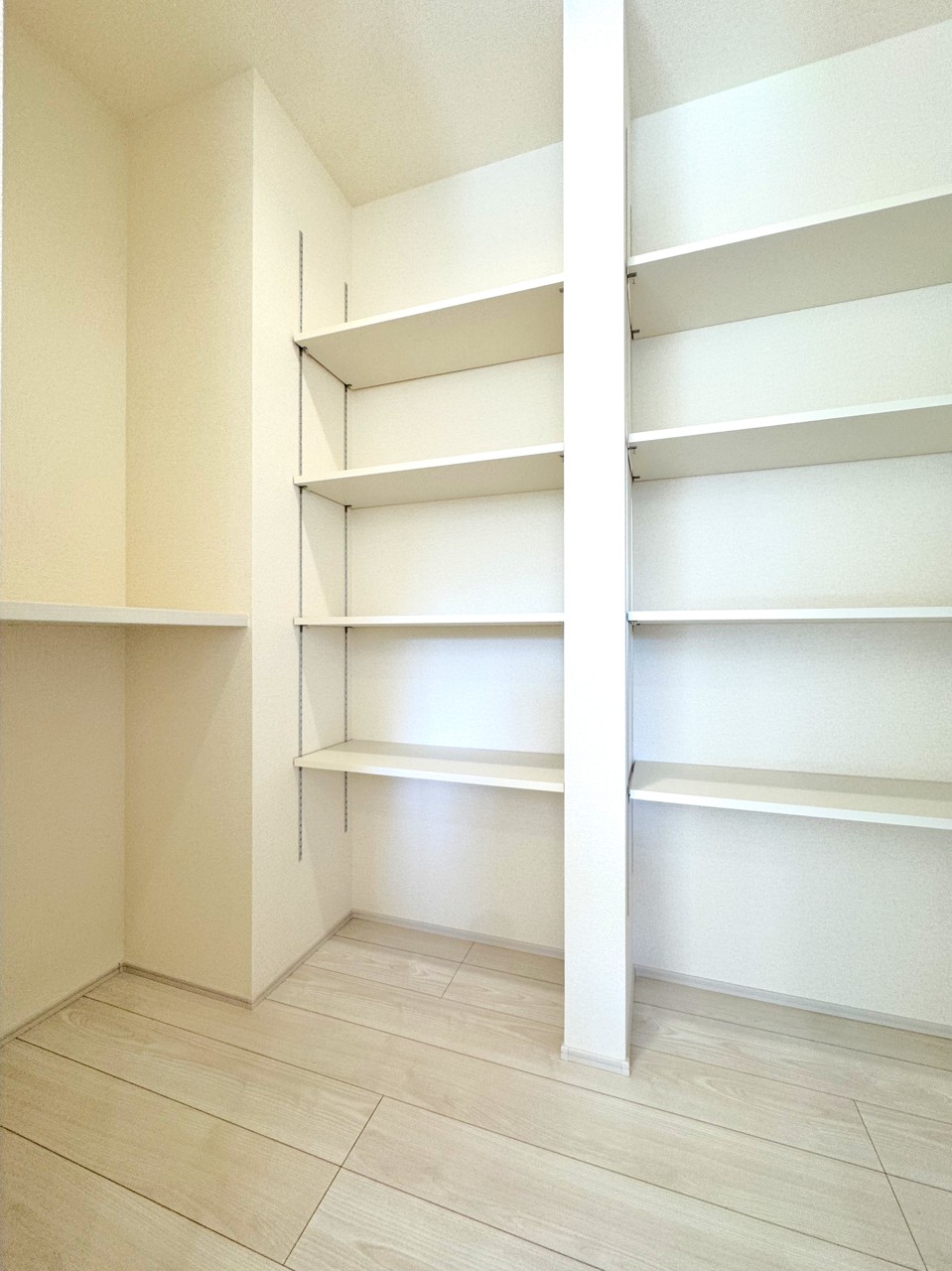 床下収納、可動棚付広々パントリー、まとめ買い派に嬉しい収納♪