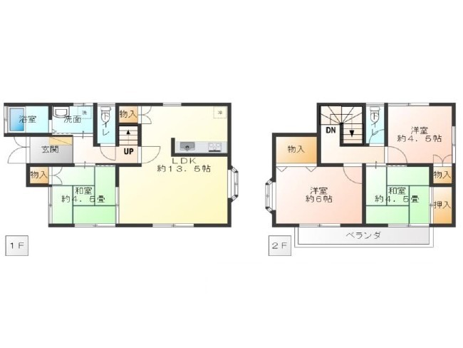| 間取 | 4LDK (LDK13.5帖、和室4.5帖、洋室6帖、洋室4.5帖、和室4.5帖) | ||
