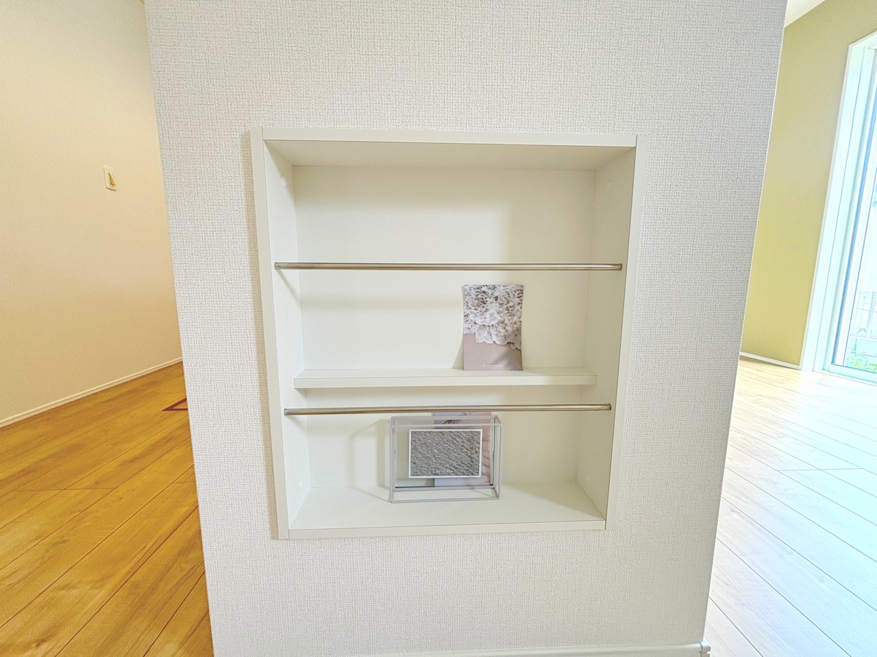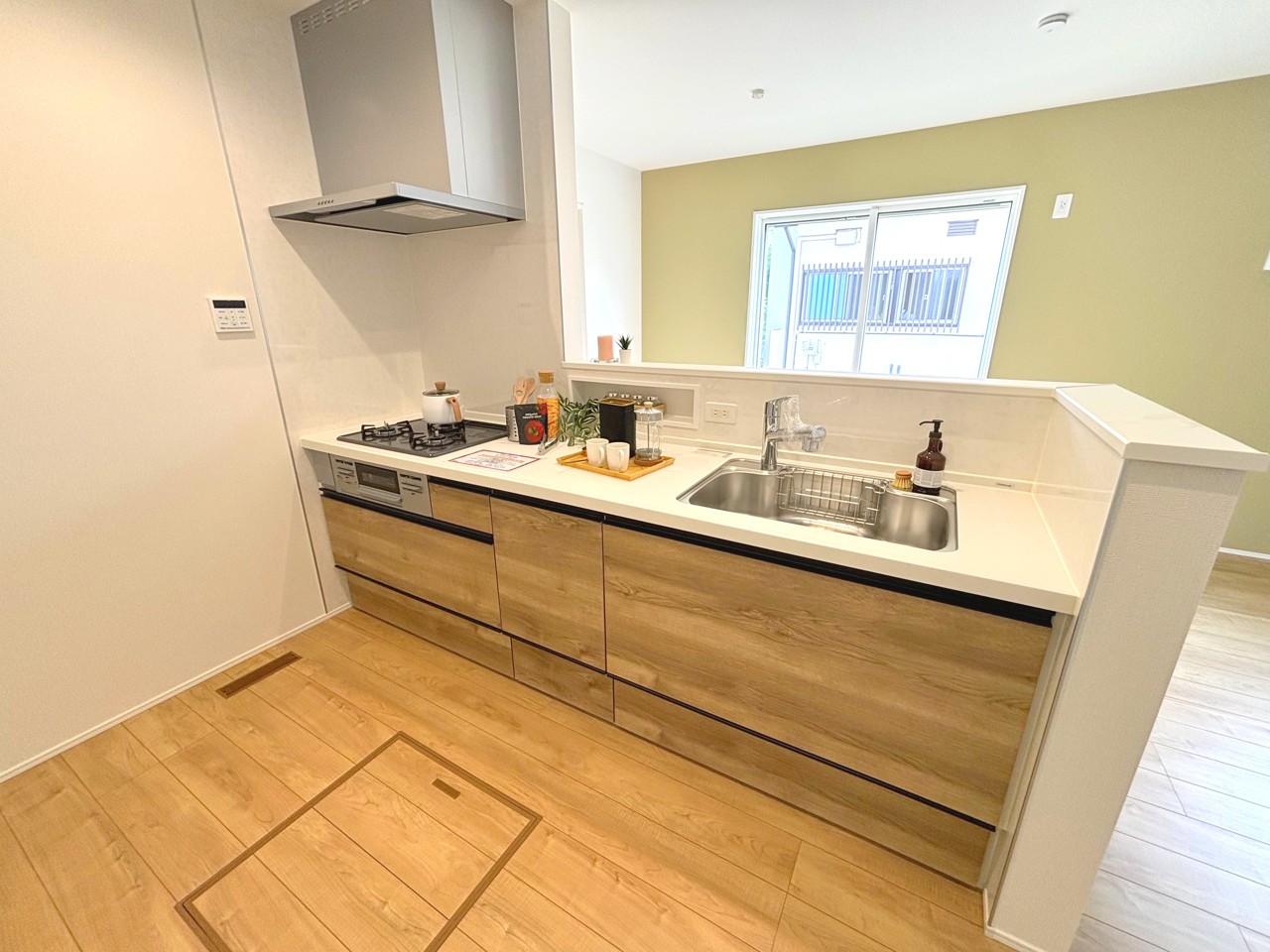 オープンタイプの収納は小さなお子様が指を挟む心配もなくなります♪