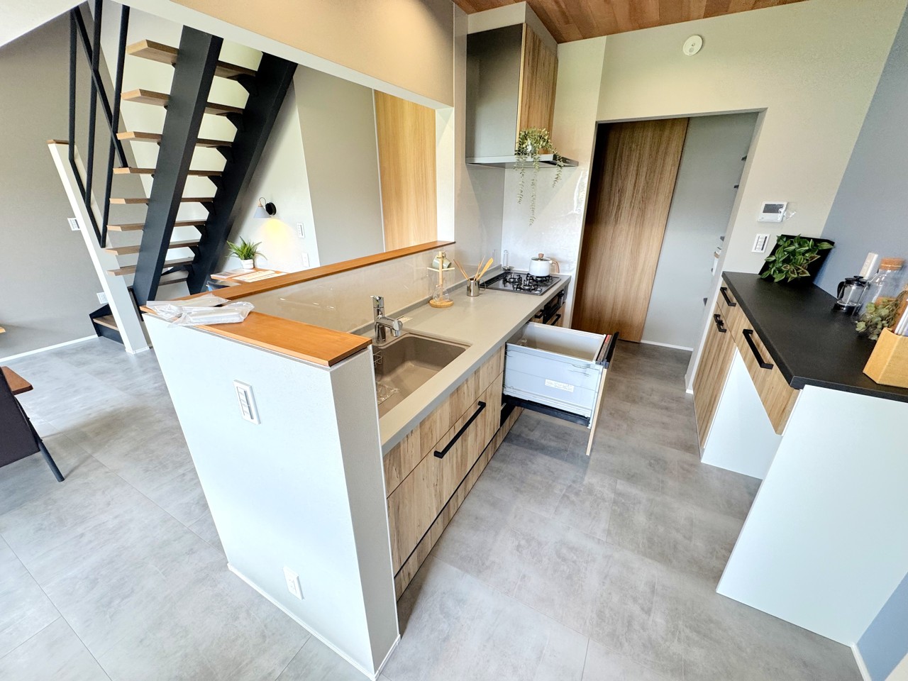 リビングのお子様を見守りながらお料理ができる対面キッチン♪