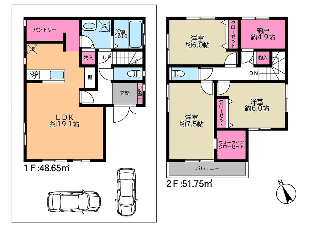 WICや約4.9帖の納戸など大型の収納が充実♪