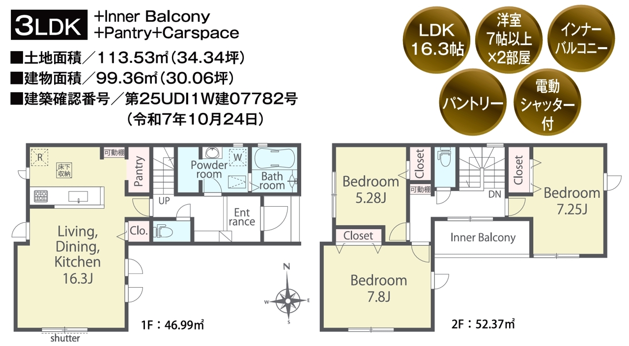 | 建築確認番号 | 第25UDI1W建07781号、他 | 駐車スペース | あり |