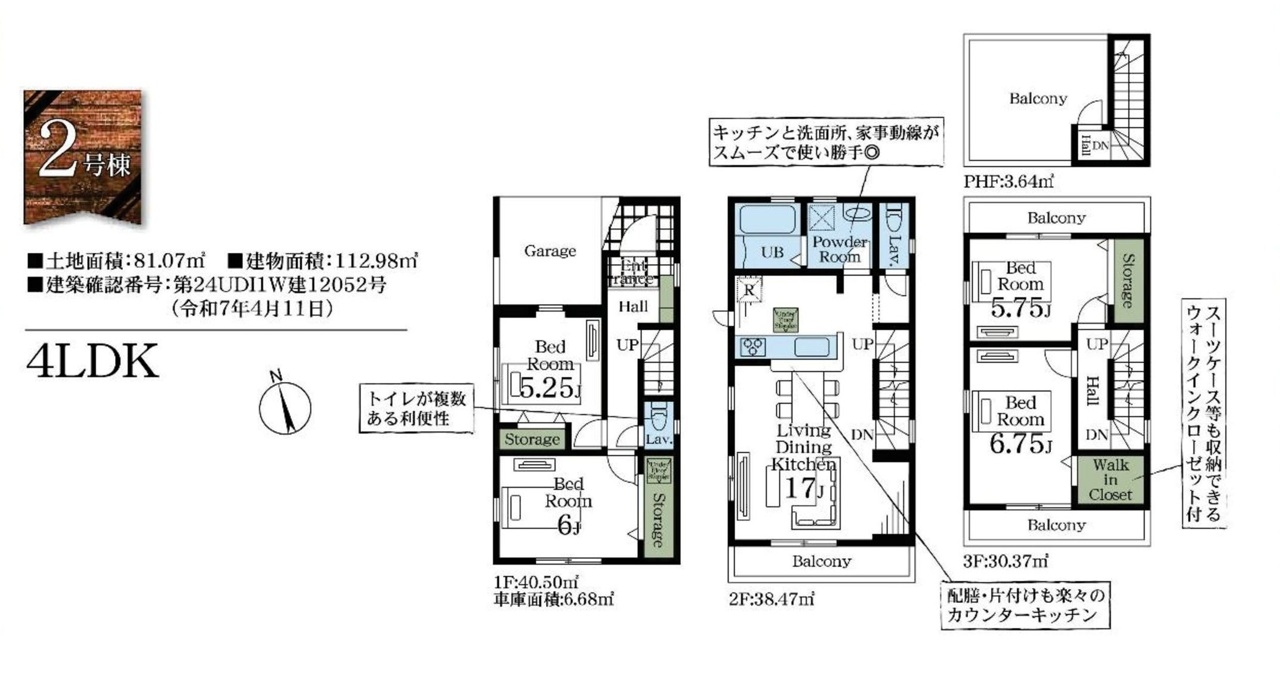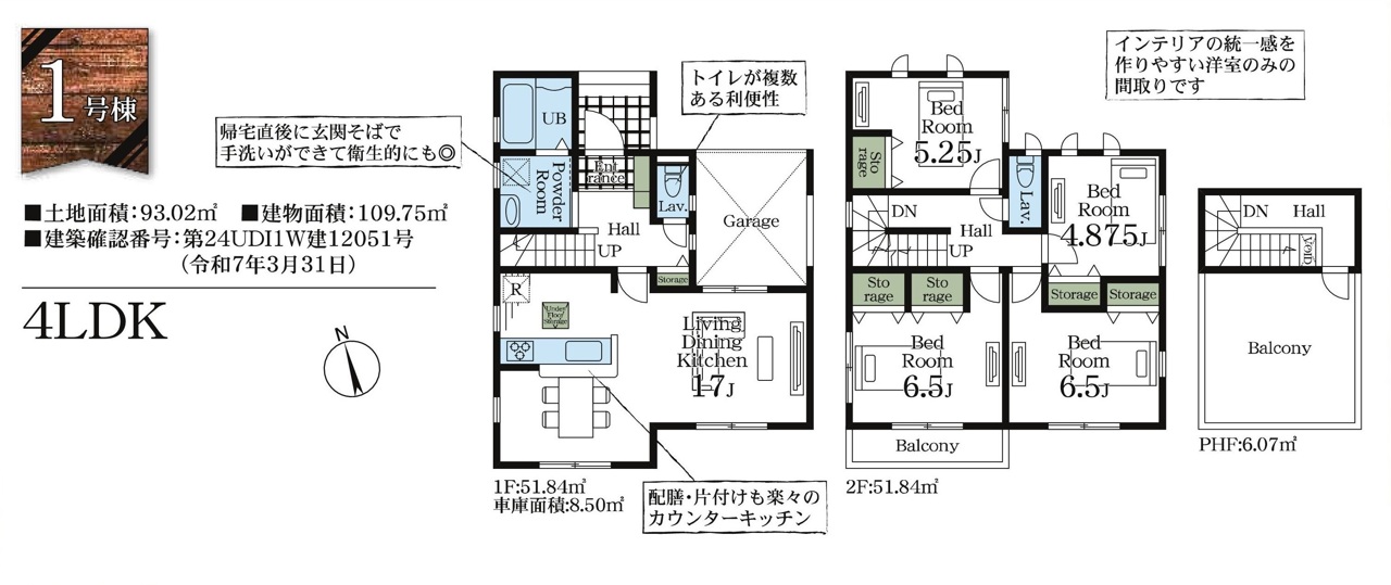 | 建築確認番号 | 第24UDI1W建12051号、他 | 駐車スペース | 1台(車庫) |