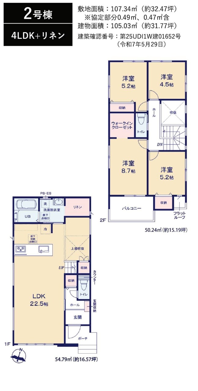 | 建築確認番号 | 第25UDI1W建01652号 | 駐車スペース | 2台(カースペース:並列) |