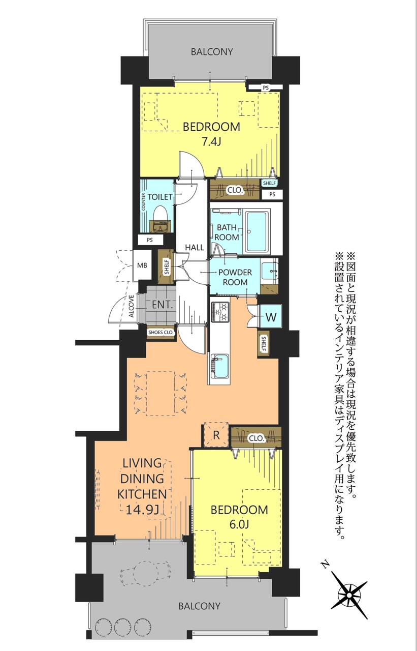 | 間取 | 2LDK (LDK14.9帖、洋室6帖、洋室7.4帖) | ||