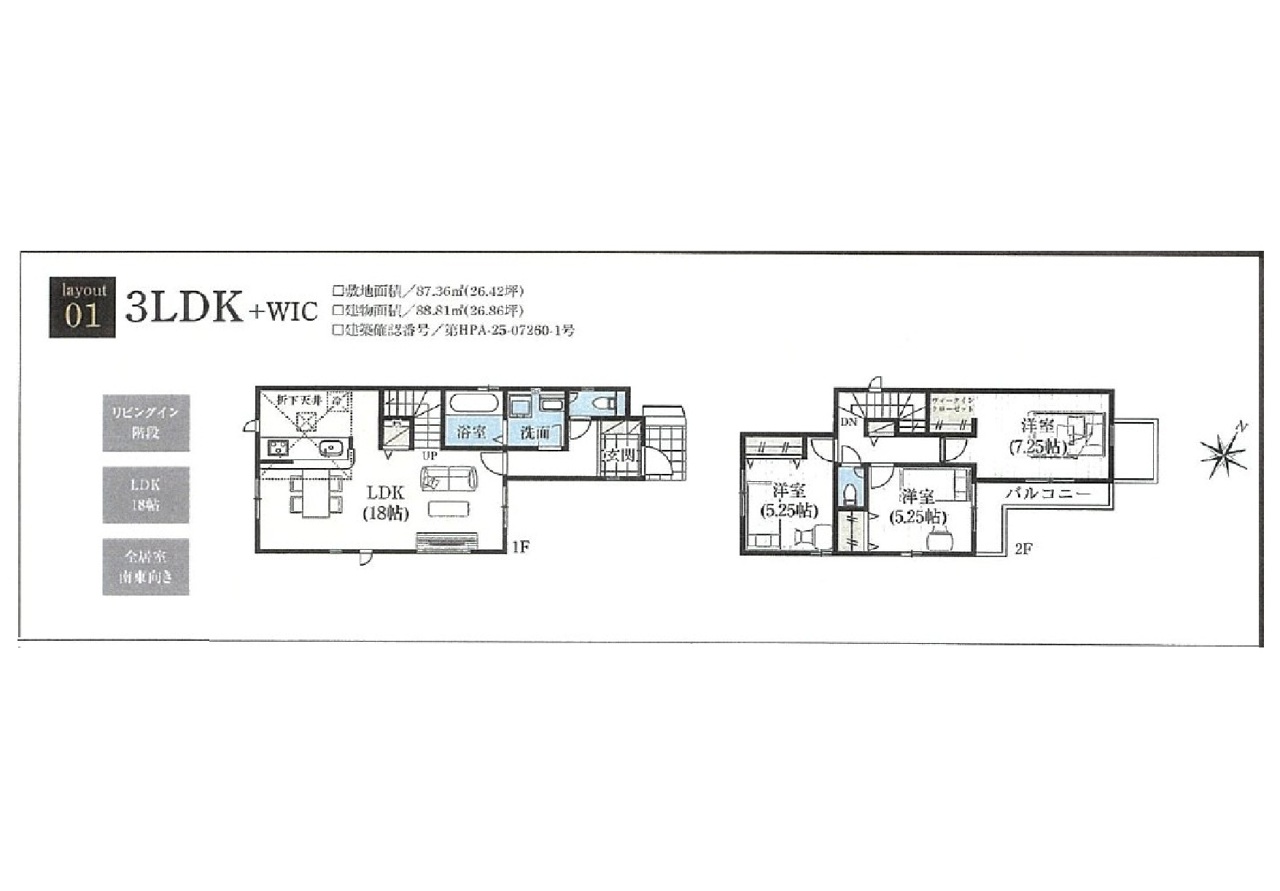 | 建物面積 | 86.53m² ~ 88.81m² 実測 | ||